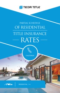 THIS RATE CARD LISTS PREMIUM RATES for policies often used in residential real estate transactions in the area. Other policies and endorsements not listed in this Rate Card may be available for your transaction. Other prices or discounts to these rates may also be applicable in your transaction. Please consult your Ticor Title representative for further information on rates and coverages available. This schedule of fees has been prepared and published in compliance with the Insurance Code of the State of California and for the convenience of our customers in determining charges for services regularly rendered. Other types of coverages are available. Please contact our local office for more information. Other Fees and Charges May Apply. Amounts shown herein are Subject to Change.